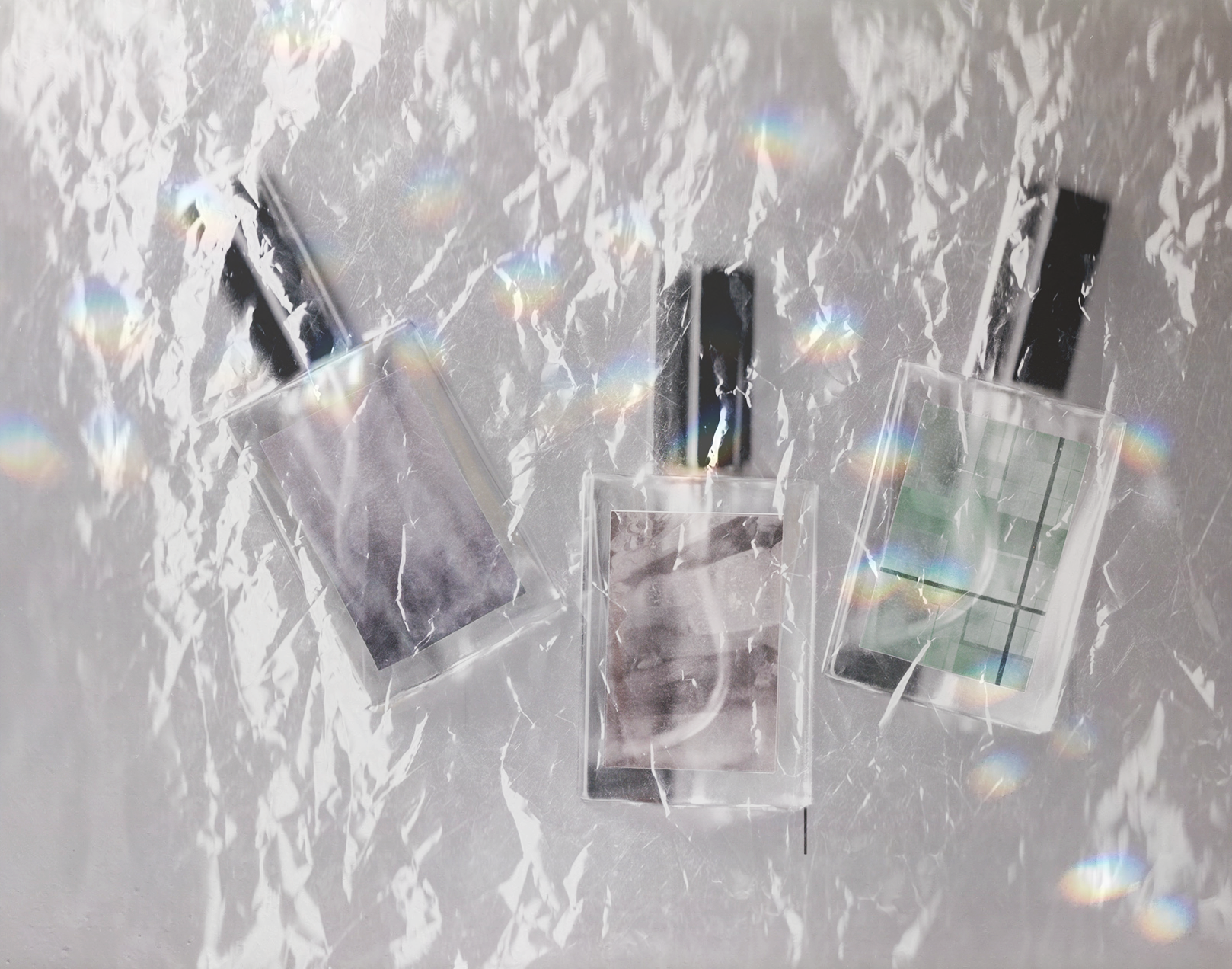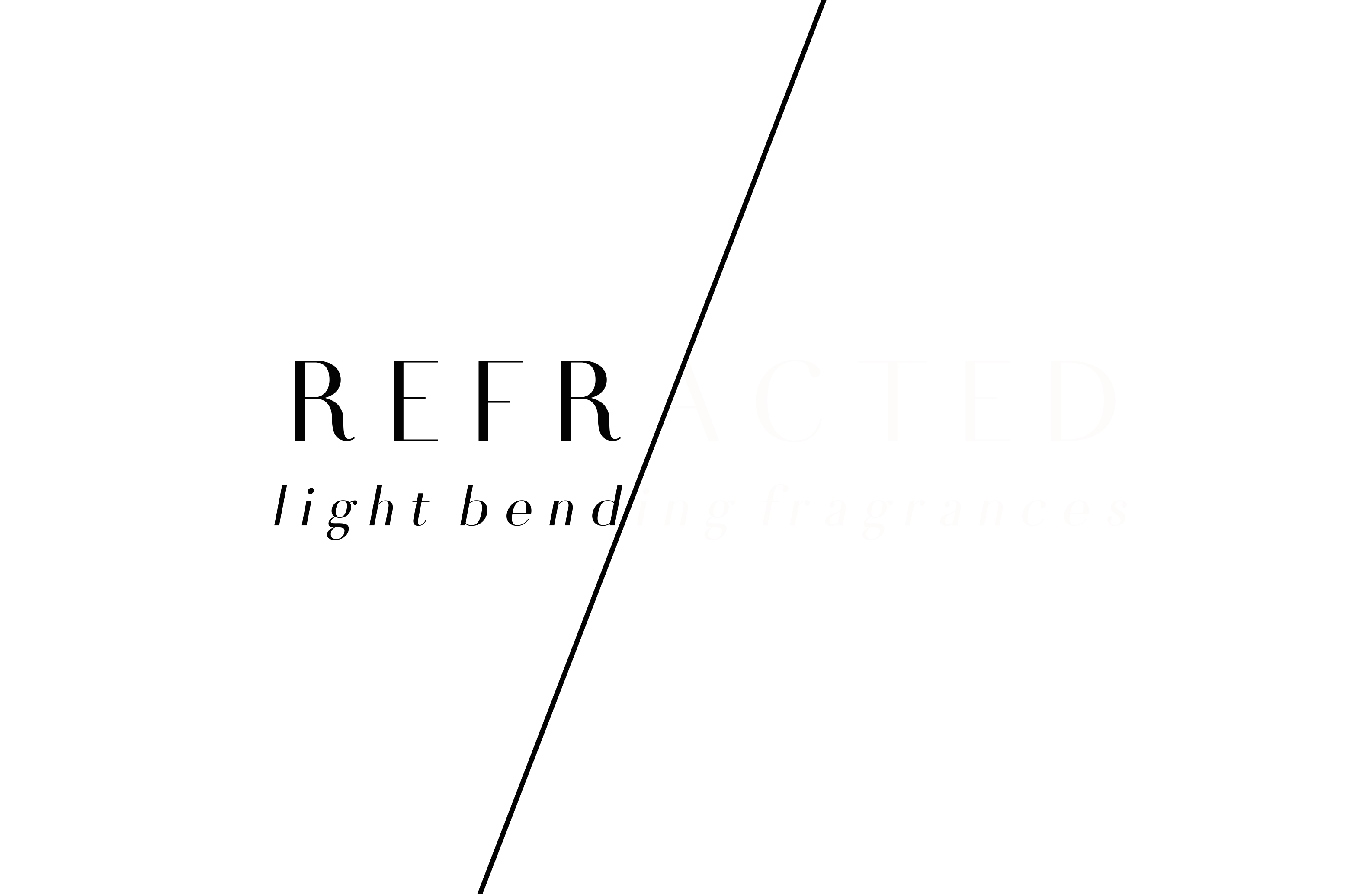 The signature scent of refracted. Inspired by the poetic act of bending light, refraction's crystalline brightness opens with spring grasses, shifting into budding soft florals, and grounded in vetiver and white musk.